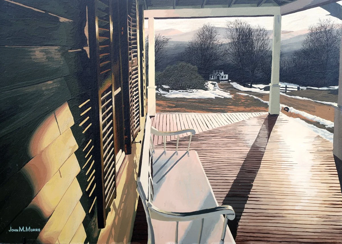 John M. Morris - On some level all visual art is decoration. However, I believe a piece can do much more. It can tell a story. Create a feeling. Bring back a memory. For me, I use recognizable objects, places, and scenes to be the foundation of a painting. I also “hide” things in my works. Just because it is fun, but also to give my audience reason to re-visit the piece to see what they might discover.